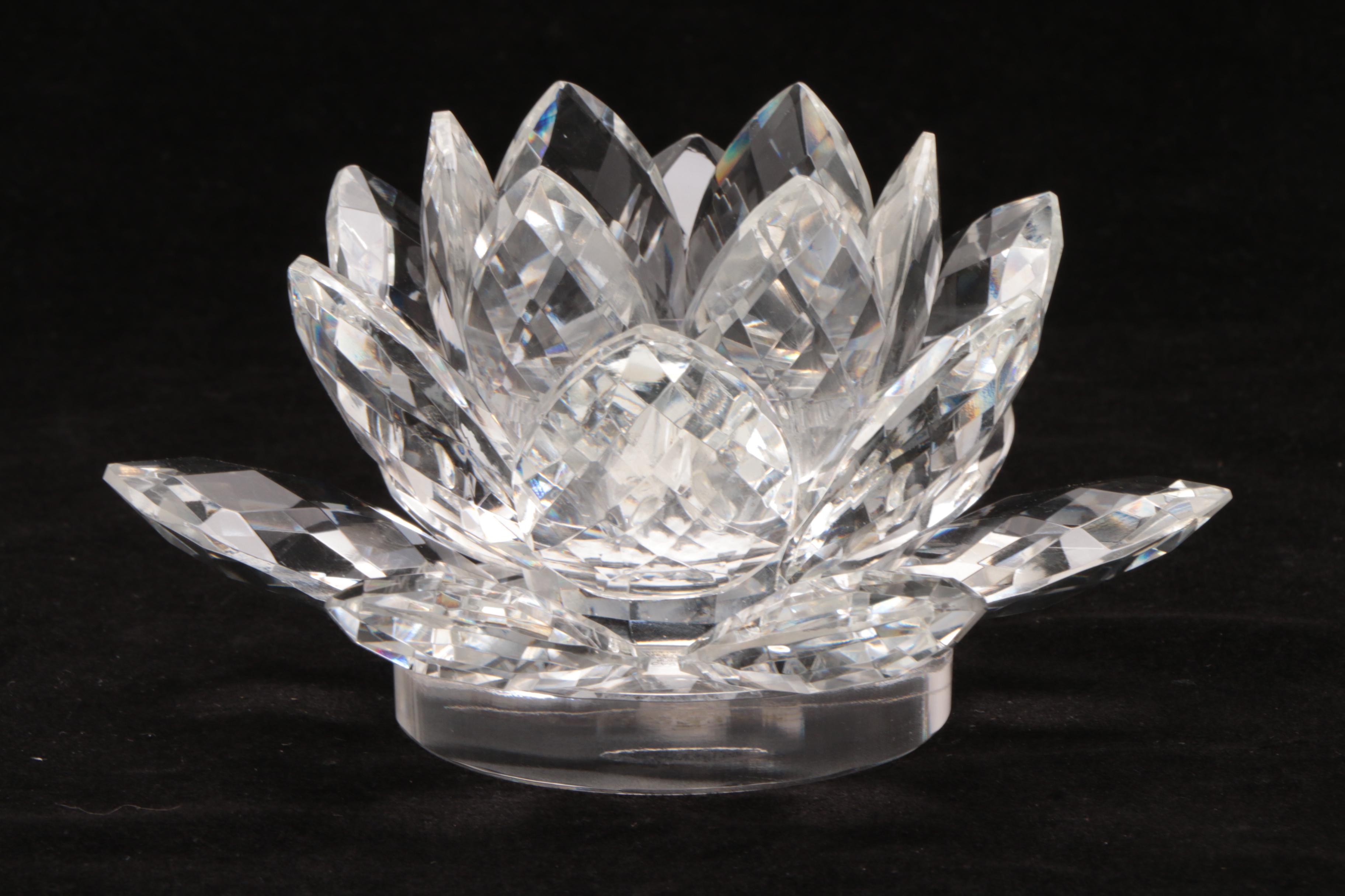 Lot #214 shannon crystal lotus crystal collection 3 x 3 pillar candle holder.